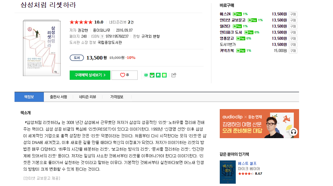 참고로 역시 머지포인트 대표를 지낸 전 삼성전자 전무 출신의 서강대 교수 권강현씨는 2016 년에 저서 "삼성처럼 리셋하라" 라는 본인의 삼성시절 경험을 바탕으로한 자기계발서 (?) 비슷한 도서를 출간한 적이 있는데 현재 머지포인트 관련 사태로 인터넷에서 조롱이 되고 있는 실정입니다.