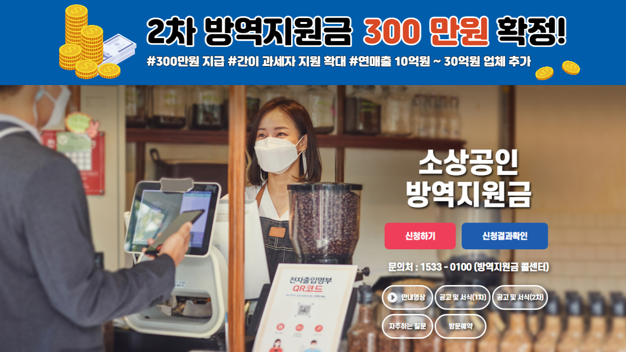 | 소상공인 방역지원금 100 만원 확인지급 신청하세요. (Feat. 1차 방역지원금 6차 진행) (0) | 2022.02.23 |