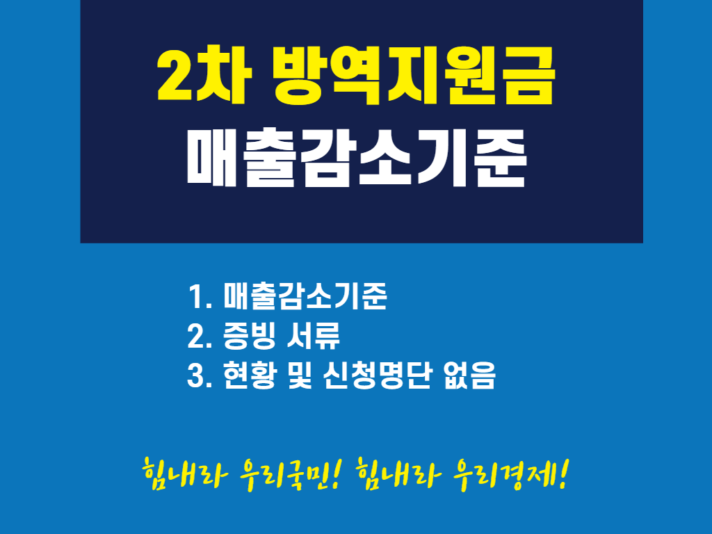 소상공인 2차 방역지원금이 개시되었고 이번에 간이과세자 매출 감소 기준이 새롭게 바뀌어 다소 문의가 많은 것 같은데 이번 2차 때 바뀐 매출 감소 기준과 증빙 서류에 대해 알아보고 현재 방역지원금 진행 현황과 신청명단에 없다고 나올 경우 진행 사항에 대해 알아봅니다.