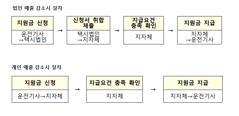 - 코로나 19 로 매출이 법인, 개인의 매출이 감소된 법인택시 소속 운수 종사자