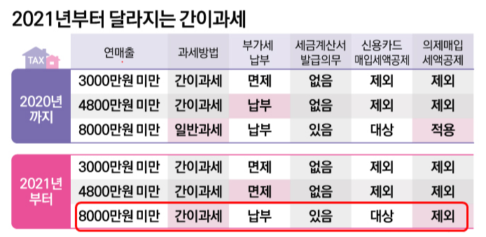 또한 간이 과세자 기준은 8,000 만원 미만입니다. 기존 4800 만원에서 8,000 만원으로 변경되었습니다.
