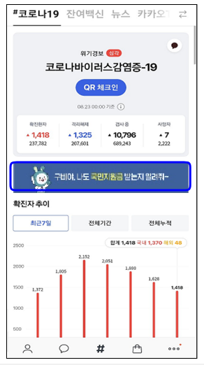 네이버와 카카오 그리고 최근 무섭게 떠오르는 종합 금융 어플 토스를 통해 알림을 신청할수 있는데 만일 카카오로 신청을 하셨다면 알림 신청을 하신 분들은 9월 5일부터 대상자 여부, 지원금 금액, 신청 방법 등의 정보를 카카오톡을 통해 수신받으실 수 있어요.
