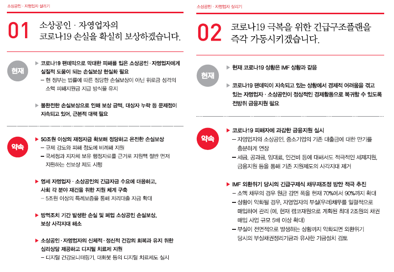 쉬워보이지 않는 공약들이지만 당선인의 첫 공약에 해당하는 만큼 반드시 어떤 형태로는 소상공인분들께 지원을 해드릴 것이라고 예상이 됩니다. 새 당선인에 대해 많은 분들께서 기대를 하고 있는데 기대만큼 잘 진행하여 소상공인 분들께 많은 도움이 되었으면 합니다.
