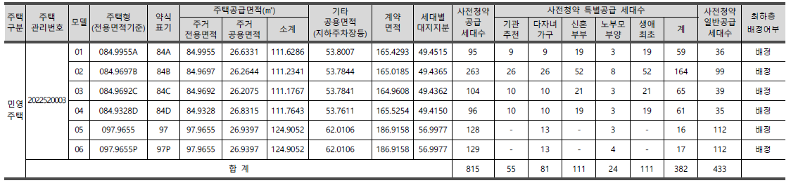- 공급 세대 : 815 세대 (특공 382 세대)