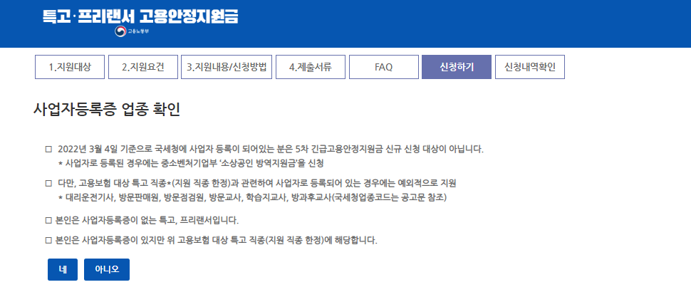 - 상기 이번 지원 제외 직종이 아닌 경우