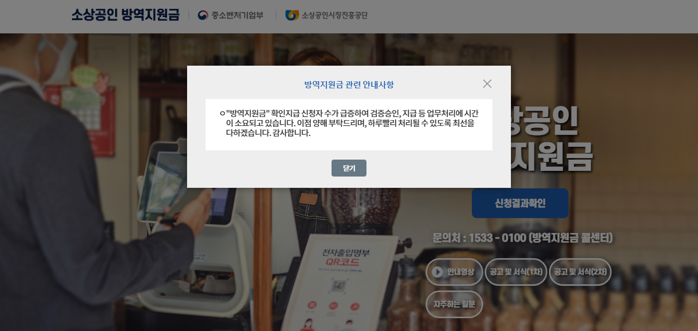 다음은 2차 방역지원금 근황인데 소리소문없이 마감되어 버렸습니다.