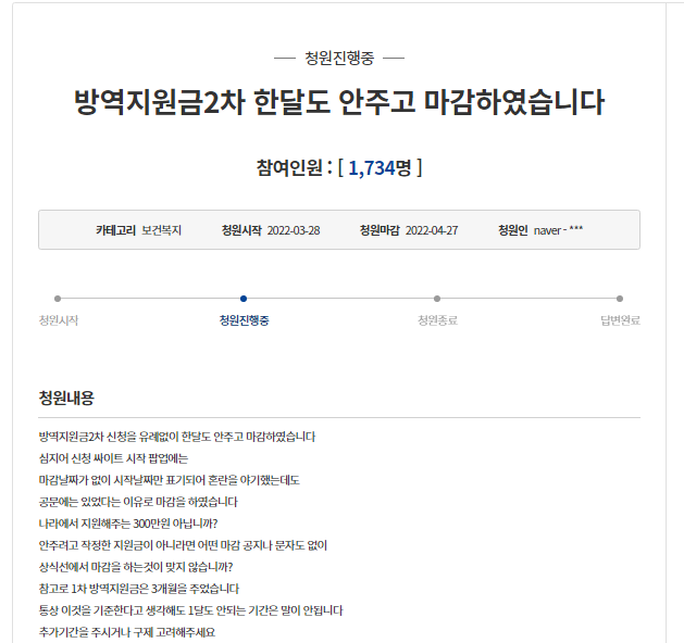 2차 방역지원금 마감 국민청원?