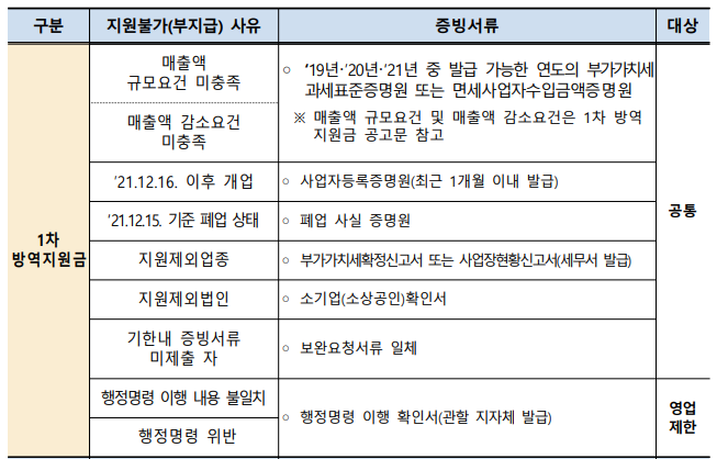 - 신청 대상 : 1차, 2차 방역지원금 신청 업체중 지원불가, 부지급 통보받은 사업체