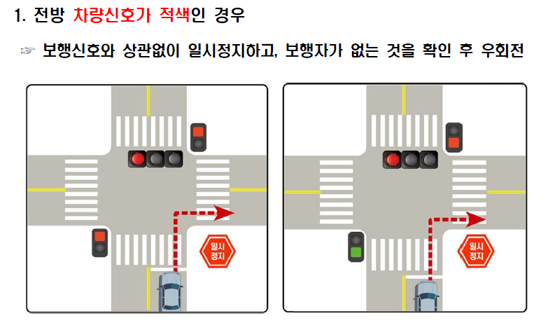 - 교차로 운전시 우회전 일시정지 의무 새롭게 도입