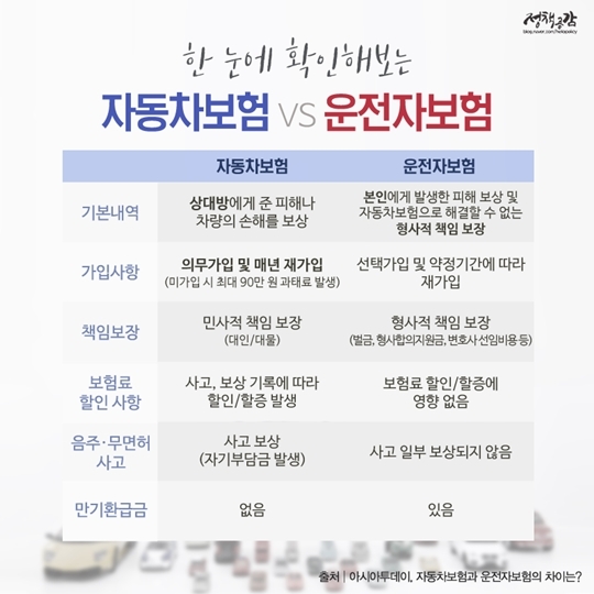 물론 당연한 이야기지만 보행자 중심의 교통 법규의 확대와 보호구역의 확대는 점차 운전자들에게 벌금 리스크가 확대되고 있는 것도 사실입니다. 운전자가 이제는 남이 아니라 "나를 보호해야하는 상황" 이 되어가고 있기 때문에 남의 피해를 배상해주는 자동차 보험보다는 도리어 나의 피해를 배상해주는 운전자 보험의 중요성이 더 높아지고 있는 것입니다.