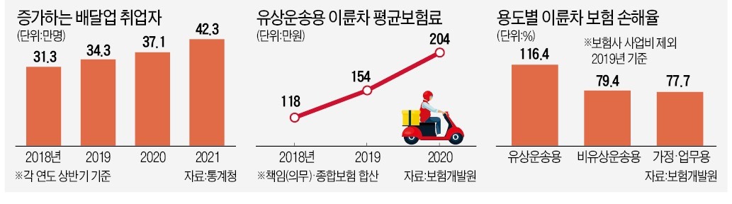 - 배달 이륜차에 대한 비싼 보험료 부담 완화를 위해 배달업 공제호헙 설립 추진