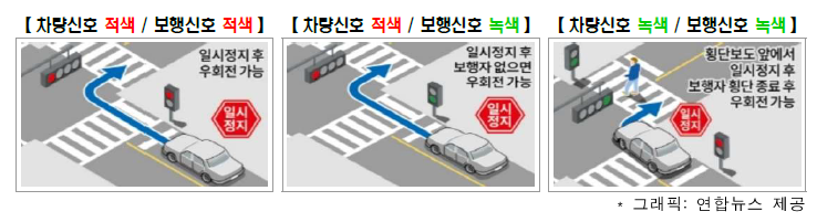 - 교차로 운전시 우회전 일시정지 의무 새롭게 도입