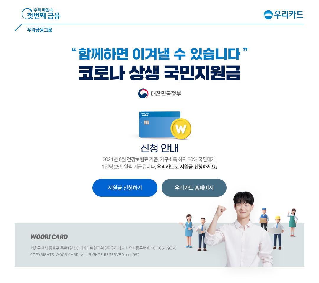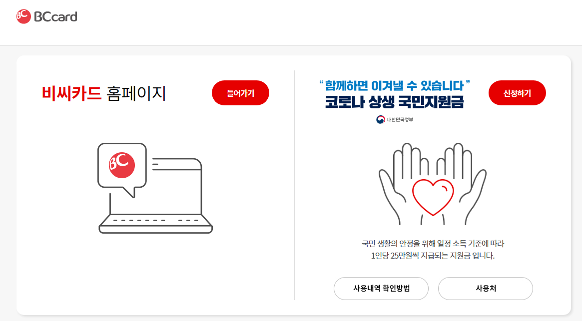 - 방법 : 우리카드 첫 화면 (첫 화면이 아예 국민지원금 신청 페이지)