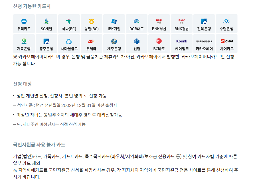 - 신청 : 개별 카드사 홈페이지
