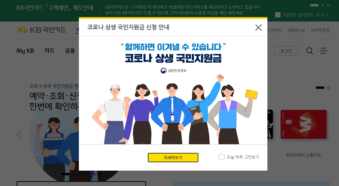 - 방법 : 우리카드 홈페이지 첫 화면 팝업 또는 메인 메뉴 배너