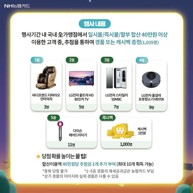 - 신청 : NH 농협카드 홈페이지 또는 앱