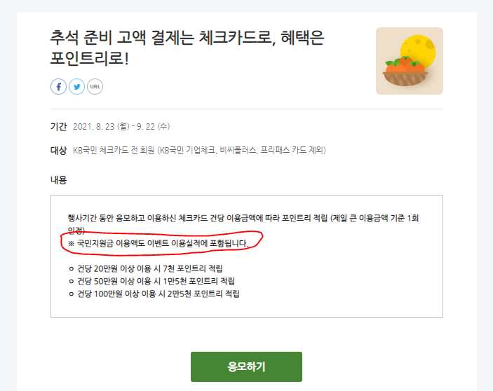 - 혜택 : 이용 금액에 따라 5천 ~ 2만 5천 포인트리 적립 (체크카드), 추석 정관장 청구할인 (신용카드)