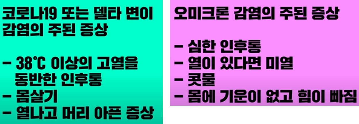 델타에 비해서는 후각이나 설사 증상은 덜하다고 합니다.