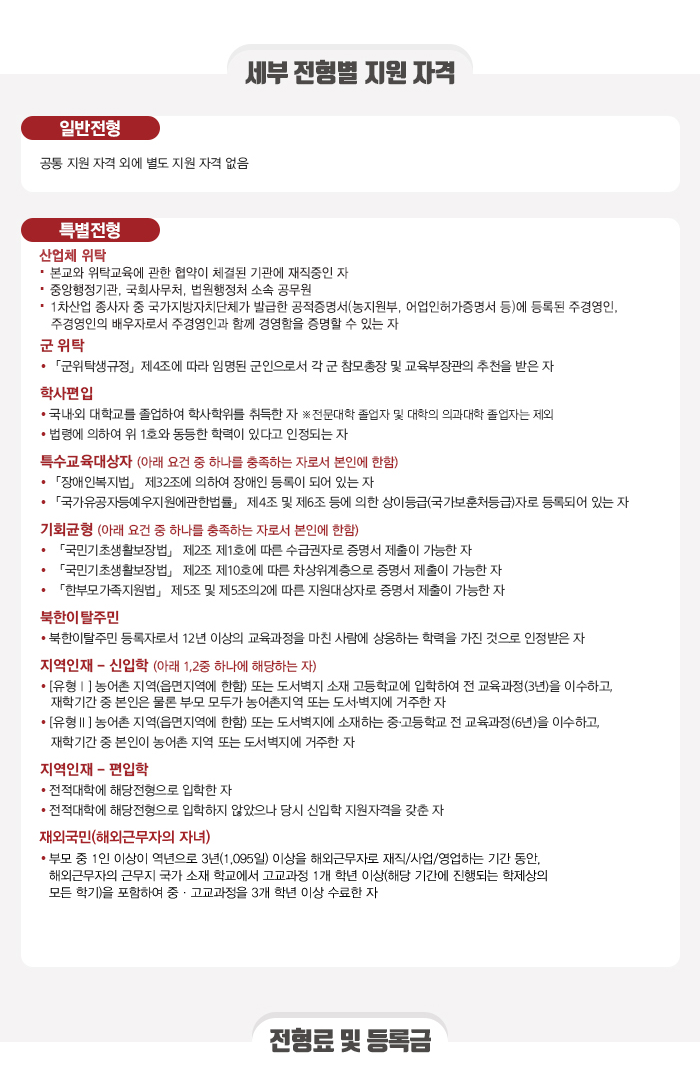 지원자격으로는 일반전형 이외에 특별전형이 있는데 특별전형 지원 자격은 하기와 같습니다.