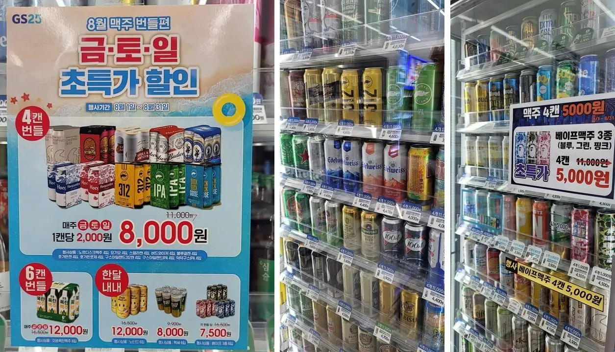 GS25 도 본격적으로 나섰습니다. 8월 맥주 금토일 한캔 2,000원입니다.