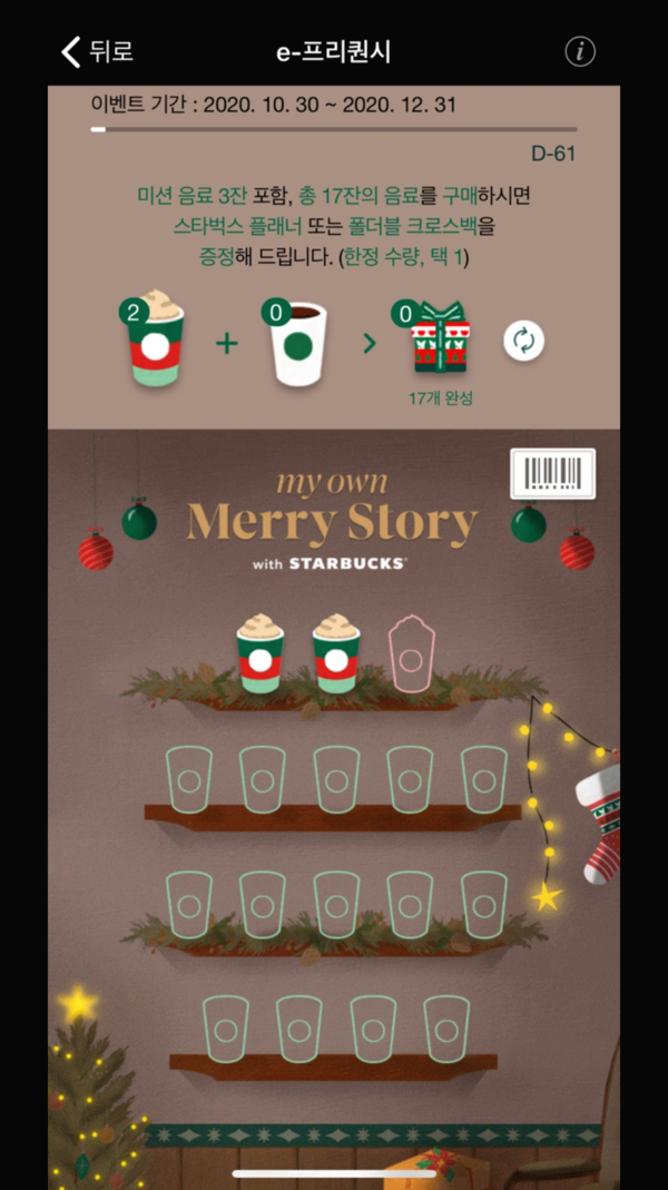 이런 스타벅스 굿즈는 일단 득템만 하면 2 배 이상의 가격이 보장되어 있기 때문에 이 굿즈의 쟁탈전이 관건인데 이 굿즈를 얻기위해서는 매번 스타벅스 커피를 구매하면서 프리퀀시를 모아야 합니다. 일종의 쿠폰 모으는 개념입니다.