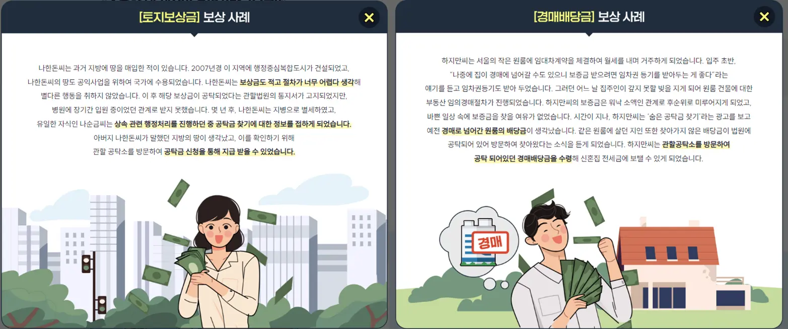 미지불 임금, 토지보상금, 주식가액, 미수령채권, 임대차보증금 등 숨은 휴면공탁금 찾아가세요!