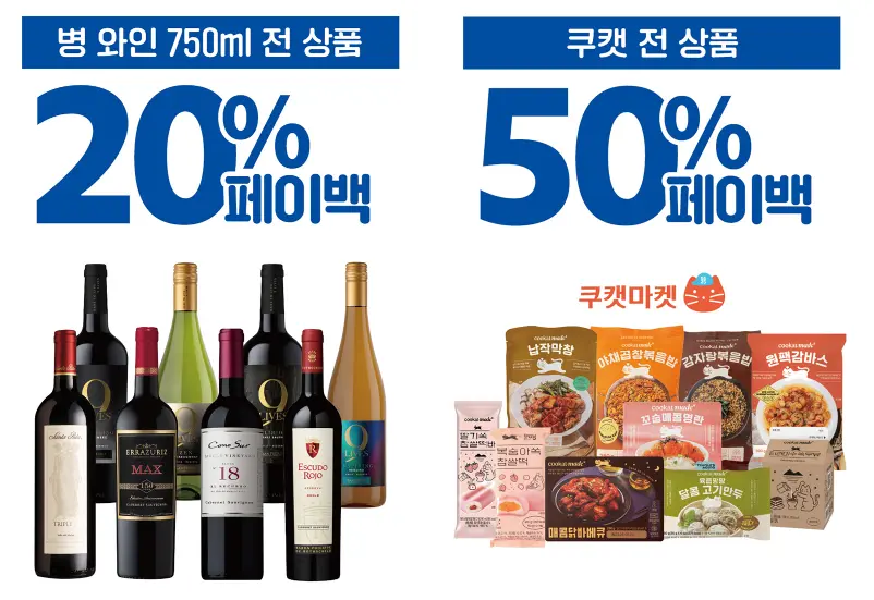 카카오페이의 경우 편의점 와인 페이백 행사가 있고 최근 GS25 에서 아예 GS25 쿠캣 전문 매장까지 차리면서 밀어주고 있는 쿠캣 50% 페이백입니다.