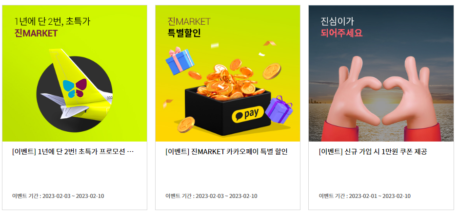 진마켓 이벤트 관련 세부 정보는 하기 진에어 홈페이지에서 확인 가능합니다.