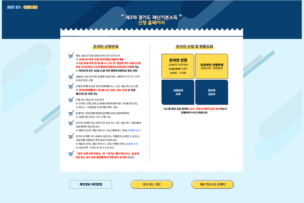 10 월 1 일부터 경기도 3차 재난기본소득 신청이 가능합니다. 다만 모든 분들에게 또 해당되는 지원금은 아니며 경기도민 중 정부의 상생 국민지원금 지급 대상에서 제외되었던 분들이 대상입니다.
