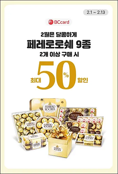 BC카드 페레로로쉐 50% 할인 및 추가 할인 쿠폰!