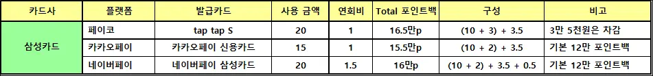삼성카드의 경우 페이코에서 발급 받는 것이 좋습니다. 다만 솔직히 포인트로 이정도 수준이면 차라리 현금 받는게 훨씬 낫다고 봅니다.