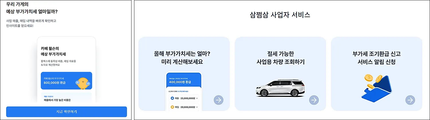 - 부가가치세 신고 대행 (최근 추가된 삼쩜삼 신규 기능)