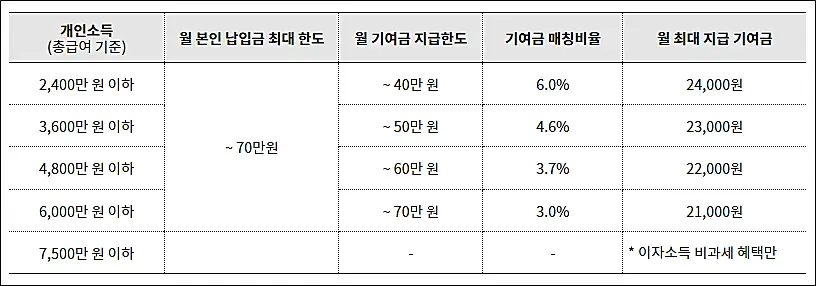 - 개인 소득 조건 : 개인소득 7,500만원 이하 (6,000만원 이하부터 정부 지원금)