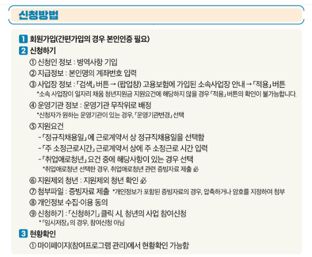 일자리 청년지원금 신청방법 접수기간