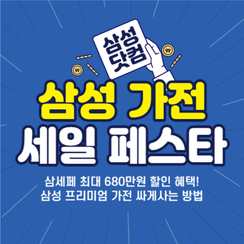 삼성 가전 구매하시려는 분들은 삼성 프리미엄 가전을 최대 반값 까지 저렴하게 구매할수 있는 연중 최대 삼성 할인 행사 삼세페 삼성 세일페스타를 필수로 검토하셔야 합니다. 삼성 명품 브랜드 BESPOKE 비스포크와 QLED 4K 8K TV 등을 특가로 판매되고 있기 때문입니다.