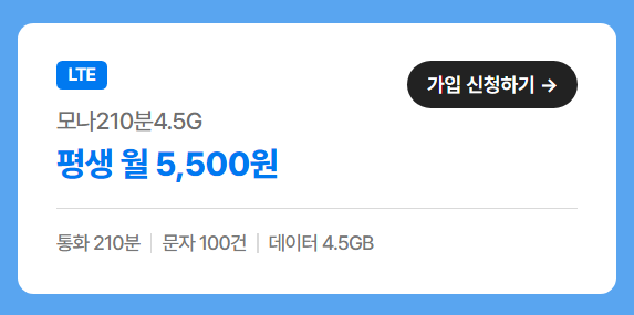 모나모바일 요금제 평생 월 5,500원 요금제입니다. 적절한 가격이라고 생각됩니다. 와이파이 환경과 결합된다면 가장 적절한 가격과 사양이라고 생각됩니다.