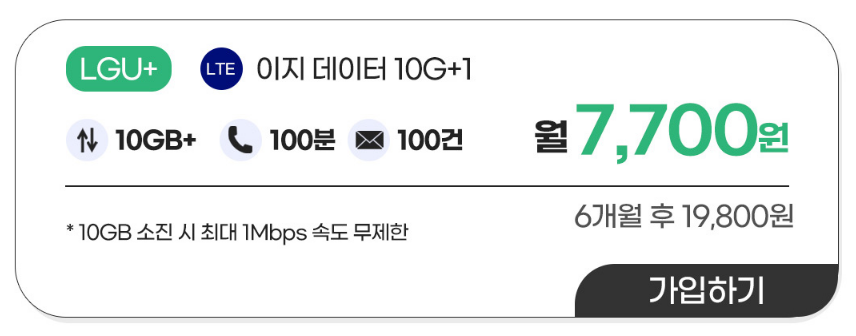 10GB + 1Mbps 요금제