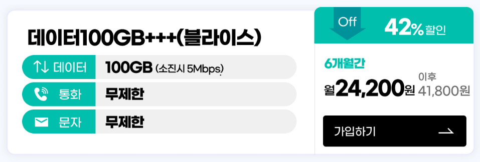 데이터량이 많은 5Mbps 요금제에서는 스노우맨 100GB + 5Mbps 에 블라이스 혜택이 주어지는 데이터 100GB+++ 블라이스 요금제가 좋습니다. 데이터 량이 더 필요하시다면 블라이스 혜택을 빼고 동일 가격으로 150GB + 5Mbps 로 24,200원 요금제가 있습니다.