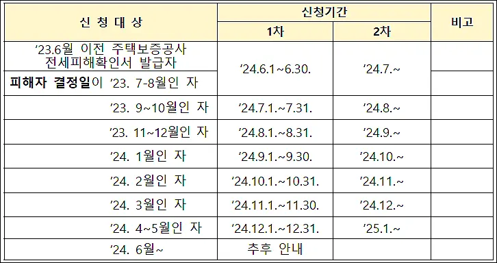 - 특별법 시행 전 2023년 6월 1일 이전 전세피해 확인서를 발급받은 자