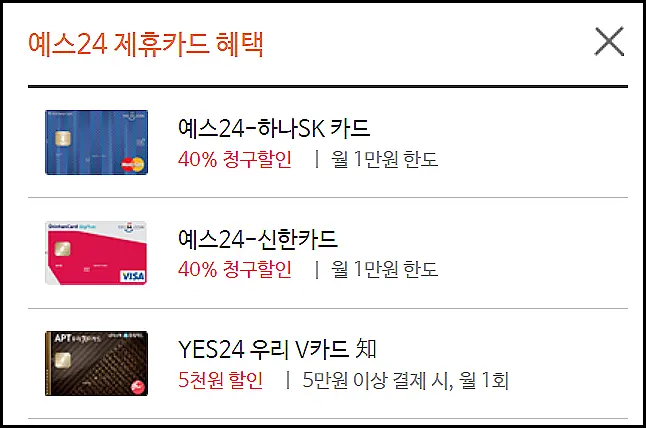 ■ yes24 제휴카드 할인금액