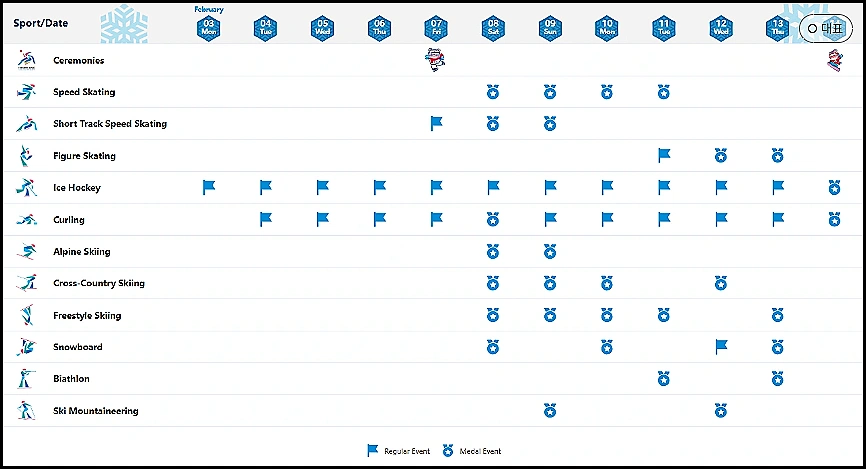 2️⃣ 주요 경기 일정 (메달 이벤트 포함)