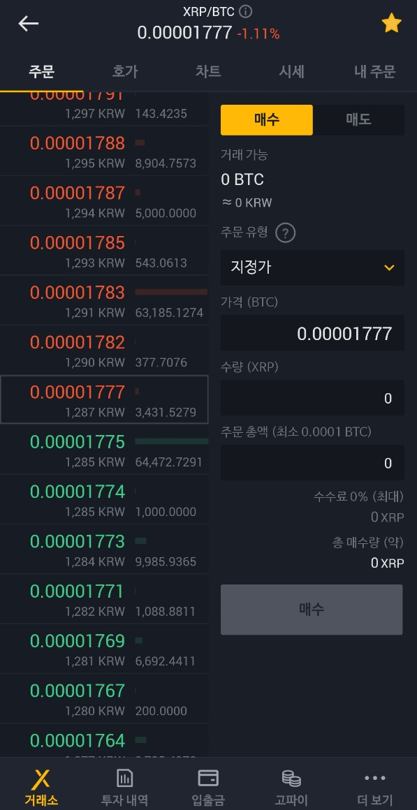 - 현재 BTC 마켓 거래 수수료가 무료이다. (10 월에서 11 월 한달 더 연장)