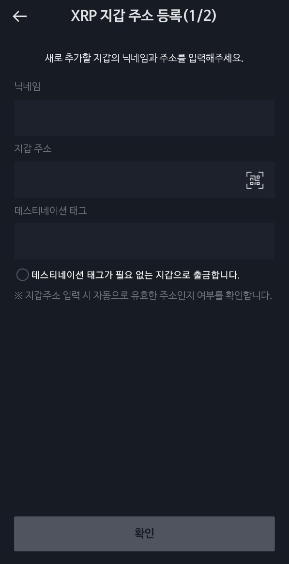 - 업비트 리플 입금 주소와 데스티네이션 태그를 고팍스 리플 출금 주소에 등록한다.