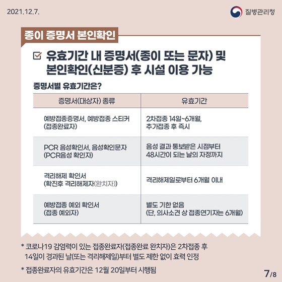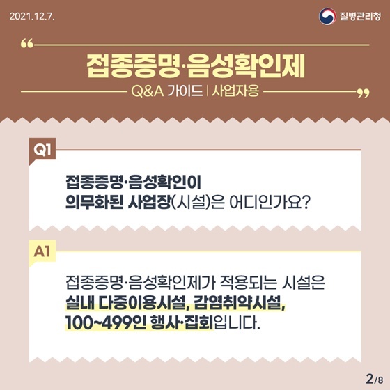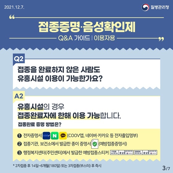 접종 증명, 음성 확인제는 감염 전파 위험이 높은 일부 시설과 고령층 등 고위험군의 보호가 필요한 시설(요양병원‧시설, 의료기관 등) 을 대상으로, 안전한 시설 이용 및 미접종자 보호를 위해 접종 완료자 및 일부예외자만 시설의 이용을 허용하는 이른바 ‘방역 패스’의 개념입니다. 자세한 내용은 하기와 같습니다.