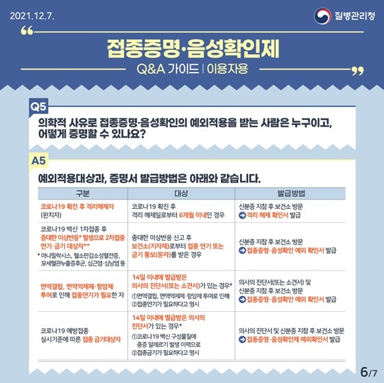 접종 증명, 음성 확인제 Q & A