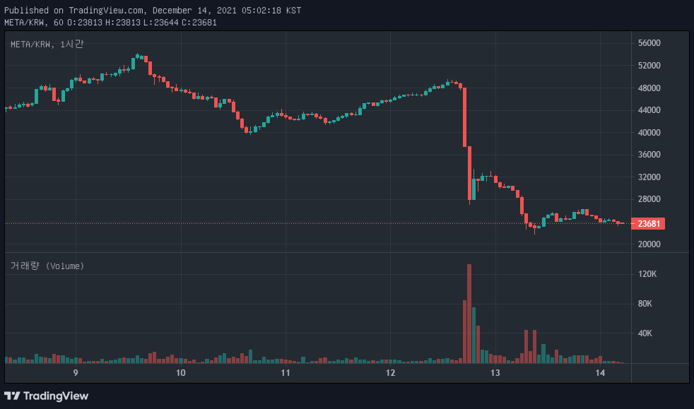 어찌된 일인지 모르겠지만 현재 페이스북에서 사명을 메타로 바꾸고 본격 메타버스 전문회사로 바뀔 것으로 선언한 뒤 바로 업비트의 메타버스 계열 코인들이 폭등하기 시작했는데요. 대표적