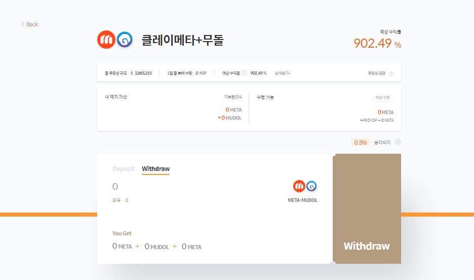 1. 클레이메타 + 무돌 페어 예치하기