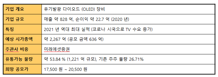나래 나노텍은 2021 년 코로나 시국에 따른 TV 수요 증가로 사상 최대 매출을 올려 그 기반으로 올해 상장에 나섰지만 항상 미래를 바라보는 주식 시장에서 OLED 는 더 이상 매력적인 테마가 아닌데요. 거기에다가 유통 가능 물량 비중이 현 1 월 공모주 최고 비중입니다. 투자자들 사이에서 호불호가 갈릴 듯 합니다.