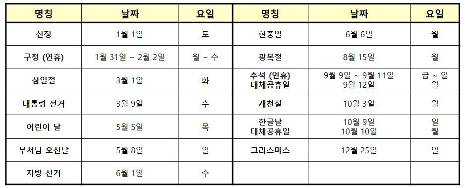 자세한 휴일 일정을 알아보시고 미리미리 가장 좋은 날을 연차일로 잡을수 있도록 계획 세워보시기 바랍니다.