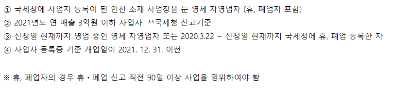- 제출 서류 : 사업자등록 증명원 및 매출 증빙서류 (세부사항은 홈페이지 참조)